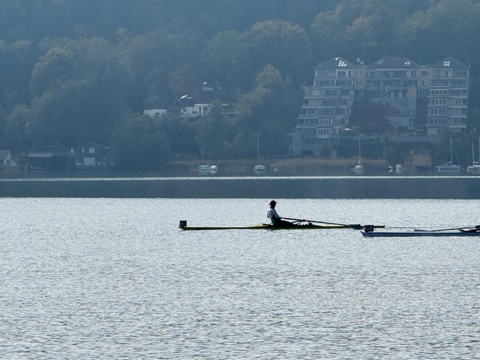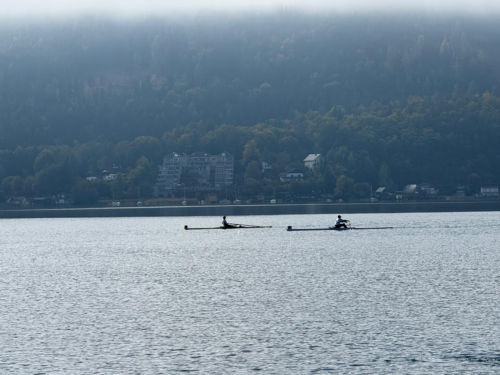 Im dichten Hochnebel starteten unsere Teilnehmer in Velden im zeitgestaffelten Massenstart. Aber 262 Teilnehmer sorgen einfach für so viel Wirbel, sodass die Teilnehmer dank des immensen Fahrtwindes für genug Zirkulation sorgten, und somit bei strahlendem Sonnenschein die Zeilgerade errudern konnten.