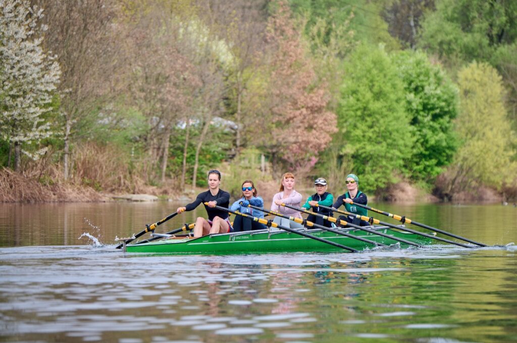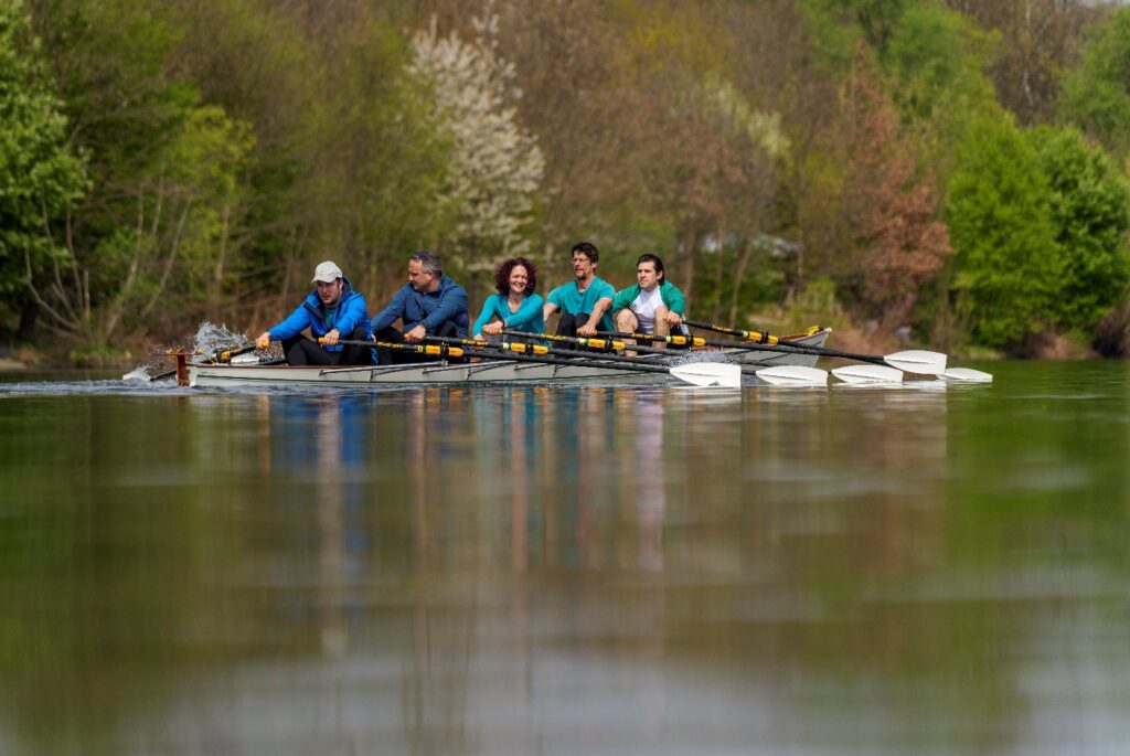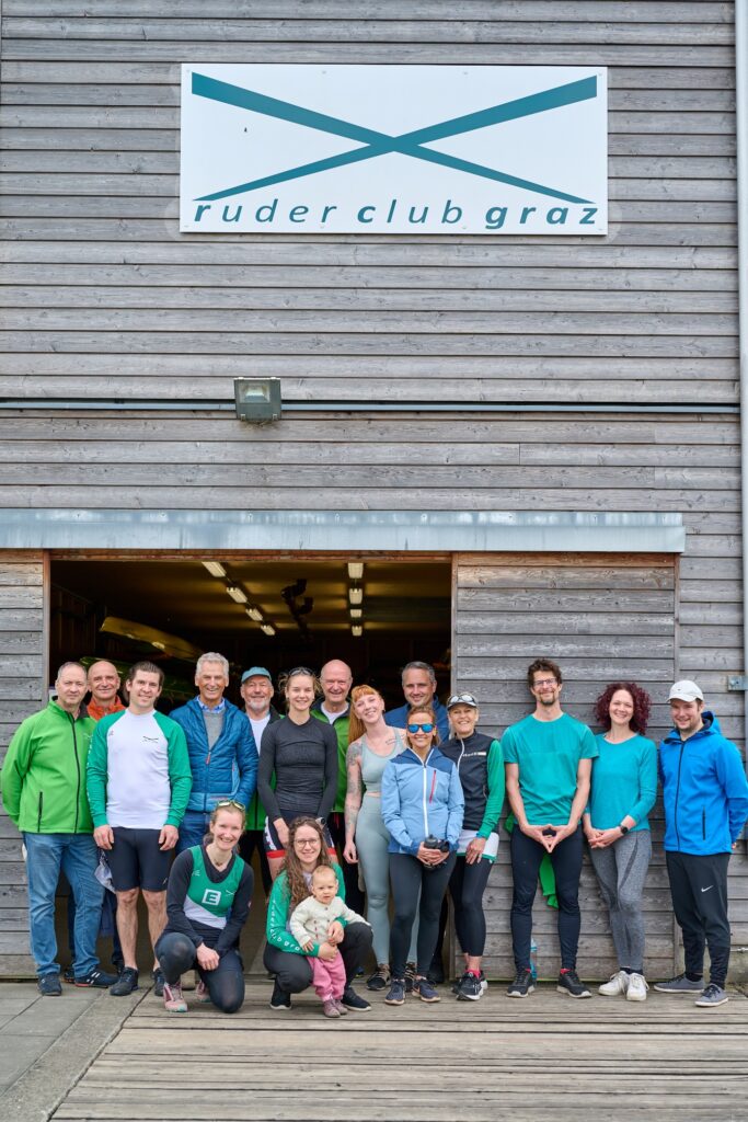 Das Wetter und unsere Stimmung waren perfekt für eine Ausfahrt auf der Mur. Rasch wurde noch die Clubfahne für diese Saison gehisst, bevor insgesamt 13 motivierte Ruderer das ruhige Murwasser zum Start in die Saison 2026 nutzten. Ausgefahren wurden unsere Fünfer „Energie Steiermark“ und „Erzherzog Johann“, sowie ein Doppelzweier und ein Einer mit unserem Präsidenten. Nur zum Zuschauen verdammt waren Rudi durch Verkühlung, Herbert durch eine akute Meniskusverletzung und Jasmin mit ihrem Baby.